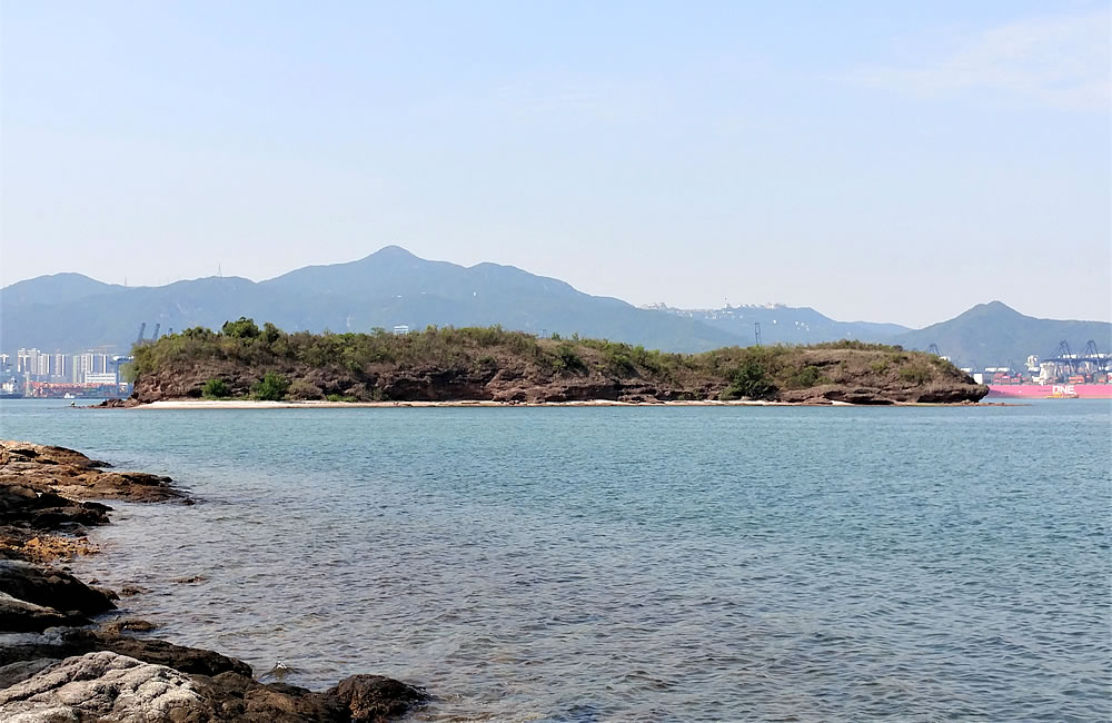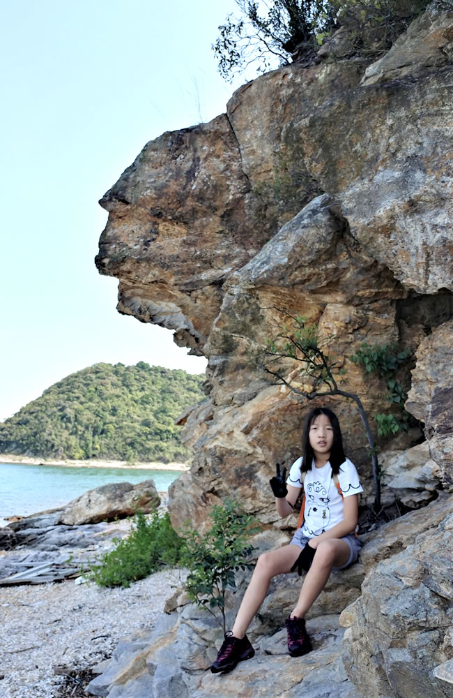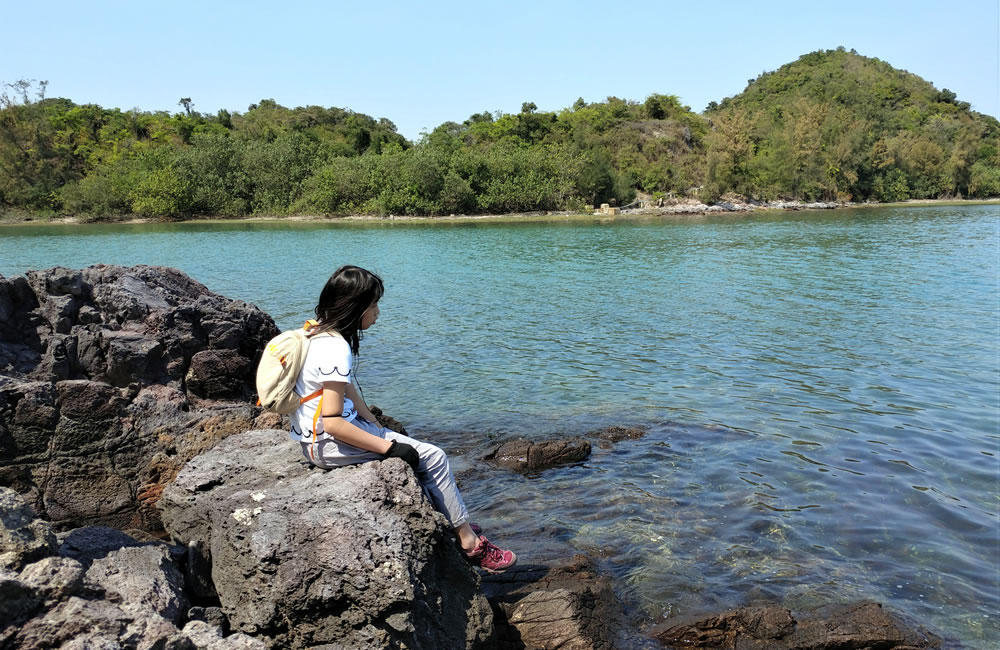 出了紅樹林,來到新舅埔角,望向鴨洲一帶島嶼,景色壯麗,再次讚美。沿途的石頭好看,有奇形怪狀的、石上長草長樹的,與及紅色抽象畫等,不時停下拍照,心急的詠雪卻不斷摧促。