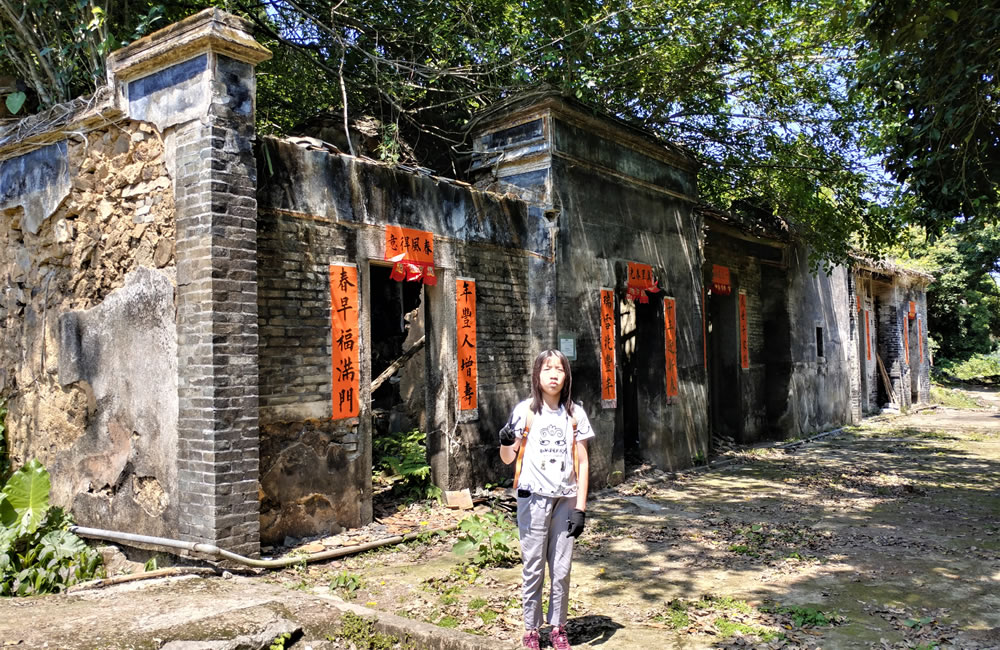到了鎖羅盤,首先要穿過一個塌樹造成的矮洞,前面一排排的村屋,有些破爛不堪,只剩下四壁門牆,但每間屋的大門都貼上新春對聯,為這個充滿各種傳說的鎖羅盤添上詭異。原來揮春背後是一個願景,據說,村民每年貼上新的揮春,除了祝賀新春外,更是他們期盼鎖羅盤復村,重現昔日的熱鬧。