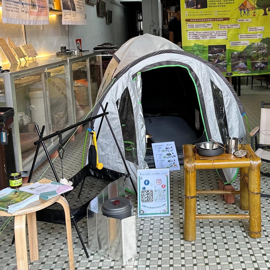 「森林村落營地」已於2023年12月30日正式開幕🎉!為了向前往沙頭角的訪客傳達更多關於營地的資訊,昨日(16/4(二))團隊在沙頭角墟的核心地段 – 位於新樓街的「王昌泰盒子」安排「森林村落營地展🏕️」,讓大家在禁區內預覽部分營地可提供的露營裝備🎒。