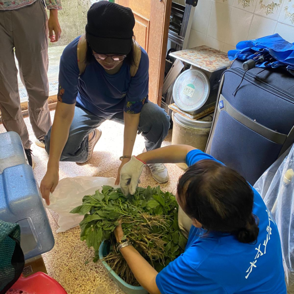 抵達梅子林後,大家有幸可以品嘗到由梅子林的村民後代 – 高姨精心製作的野菜精點,不論是莧菜滾湯、九層塔煎餅🫓,還是雞屎藤茶果,都充滿著濃濃的清新與及人情味。眾人邊吃邊聽著高姨分享她以往在村生活的故事🏡,彷彿透過野菜找回梅子林昔日的美好風光。