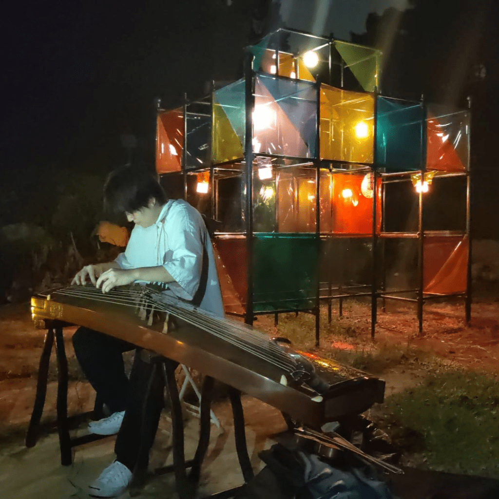 所有出席的村民與義工都為晚餐分工合作,炮製一系列具有客家鄉郊風味的特色菜餚🥘,包括梅子林海歸村民咖喱雞、蛤塘冬瓜豬骨湯、荔枝窩芋頭葉配沙地蕃薯、森林村落芋泥冰皮月餅等。在享受美食之際,更有美樂相伴🎶。來自深圳南山的古箏演奏家 — 陳紫璐小姐即席在遊樂場以美妙的琴聲助慶,再加上本地音樂人Tony Wong用結他即興彈唱🎤,令村內充滿著濃厚的過節氣氛!