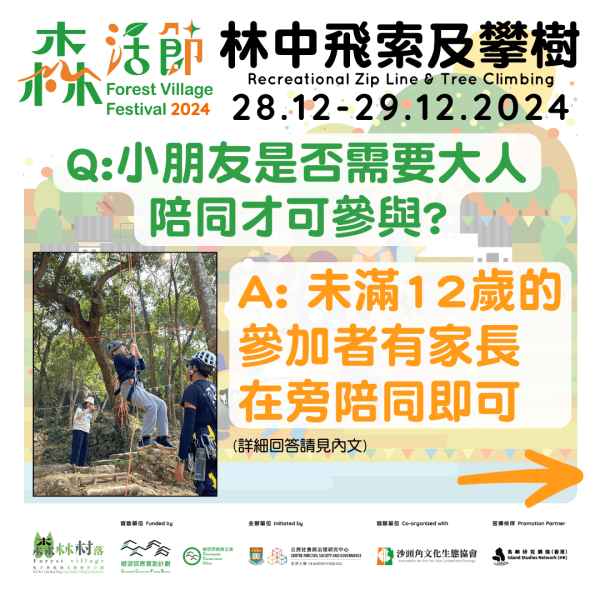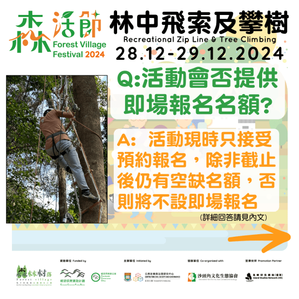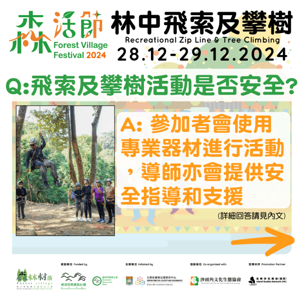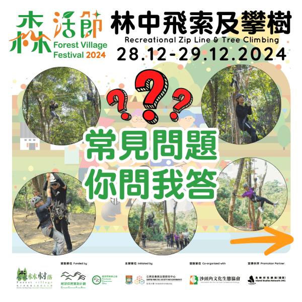 嘉年華的活動已開放接受公眾報名2個星期,當中收到很多查詢問及「林中飛索與攀樹」的安排,就讓我們一次過解答各位的疑問吧!