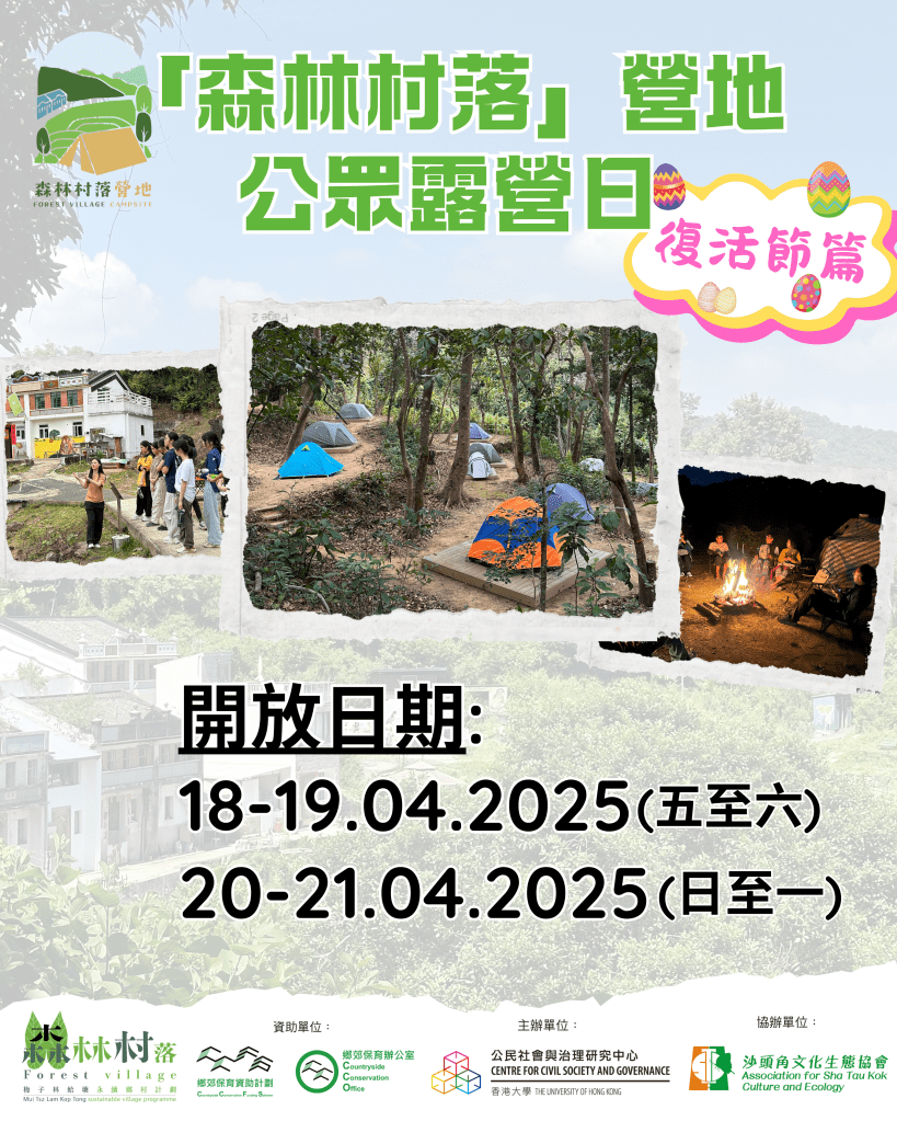 承蒙各位營友的熱烈支持與喜愛🥰,本月初的公眾露營日得以順利舉行。有見反應踴躍,我們將於復活節假期再接再厲,舉辦兩輪公眾露營日 – 復活節篇!👏🏻這次活動將繼續開放給散客報名,延續以往活動的溫馨氛圍與歡樂時光✨誠邀你與家人朋友趁着復活節長假期,花上兩日一夜,前來梅子林森林村落營地⛺,一同投入大自然的懷抱,感受春日的和煦與生機。