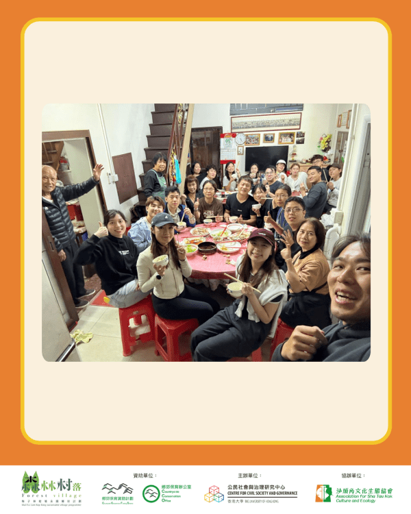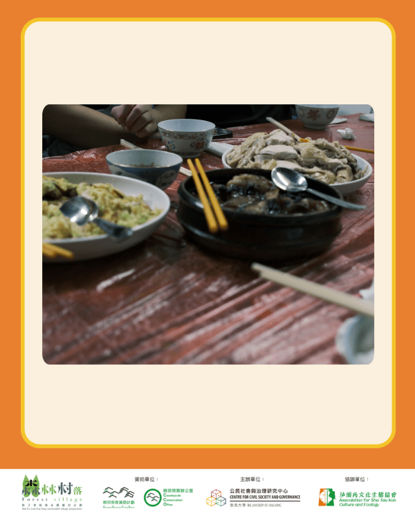 臨近天黑,眾人步行前往荔枝窩,品嚐由當地原居民群英姐準備的豐盛客家晚餐😋。桌上擺滿了色香味俱全的佳餚,包括香噴噴的客家炆豬肉、客家釀豆腐等🍲。大家圍坐共享美食,期間群英姐與她的父親黃伯分享荔枝窩的村故事,讓整個晚餐增添了不少歡聲笑語,在群英姐的家中瀰漫著濃厚的過節氣氛🌟。