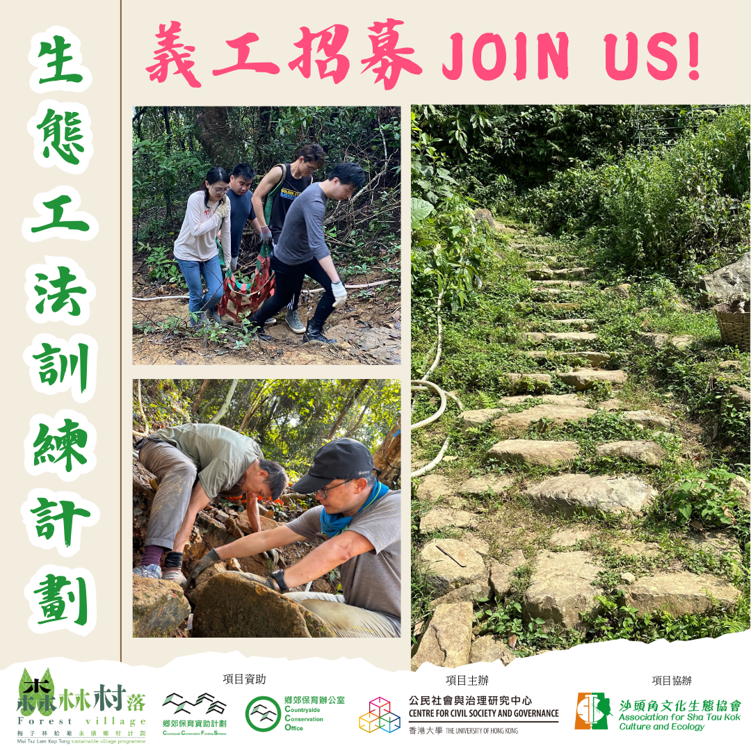 第二期「森林村落」- 梅子林及蛤塘永續鄉村計劃🌳已於本年5月展開,而手作步道一直以來都是計劃其中一個重點發展項目,旨在以生態工法…