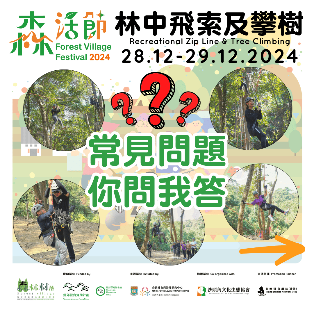 嘉年華的活動已開放接受公眾報名2個星期,當中收到很多查詢問及「林中飛索與攀樹」的安排,就讓我們一次過解答各位的疑問吧! Q: 活…