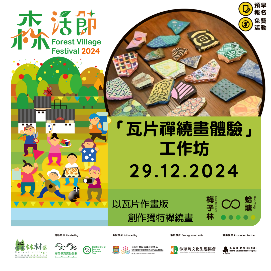在梅子林這個融合了自然🌳與人文景觀🎨的森林村落,森樂嘉年華活動伙伴 – 無止橋慈善基金 將帶領參加者一起製作「瓦片禪…